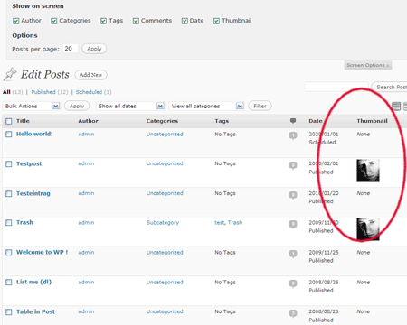 WordPress 2.9版引入文章缩略图的功能,这个特色图像功能,不仅可以在前台显示,后台文章列表中也可以显示缩略图。